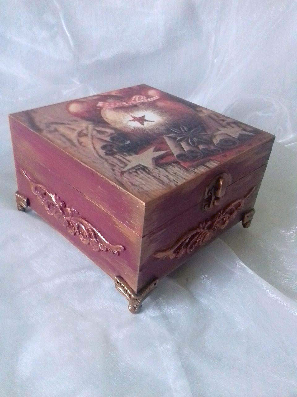 In amintirea iernilor petrecute la bunici , am realizat un set format dintr-o cutie pentru pliculetele de ceai si un suport lumanare cu doua elemente.